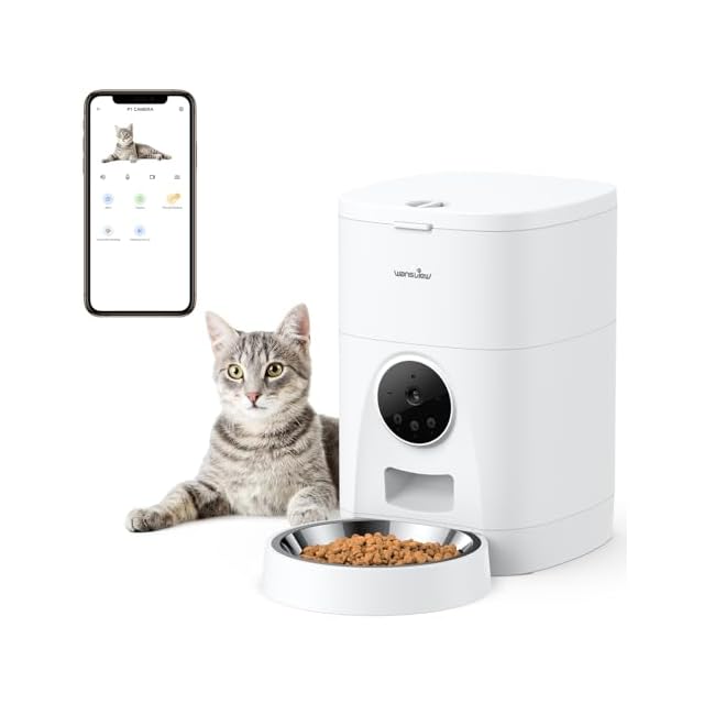 Wansview 自動給餌器 猫犬対応 300万高画素カメラ付き 4L大容量 音声録音録画可 スマート自動餌やり アプリ操作 1080Pより高精細2Kペットカメラ 1日5食 タイマー式餌遣り ステンレスボウル付属 猫ニキビよぼう 2WAY給電 中小型犬 うさぎも対応 2.4GWi-Fi対応 家族共有 会話可能 動体検出 SDカード録画 Alexa対応 ペット留守番見守り ドッグフィーダー (白)