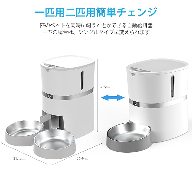【2匹の同時給餌対応】双方向ディスペンサーと2つのステンレスボウルを備えたアップグレードされたスマートフィーダーを搭載し、餌を均等に2等分することができます。 双方向ディスペンサーを取り外して、1匹のペットに個別に餌を与えることもできます。 1匹以上のペットを同時に飼っているご家族に最適です。