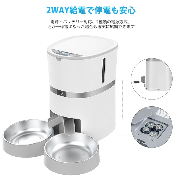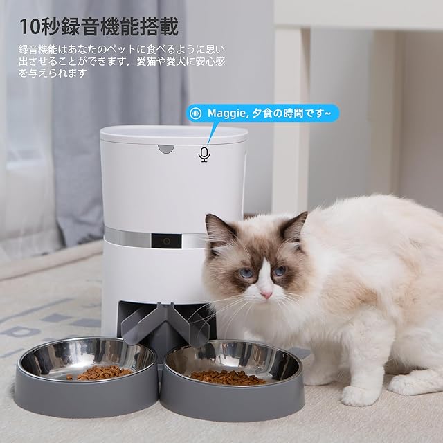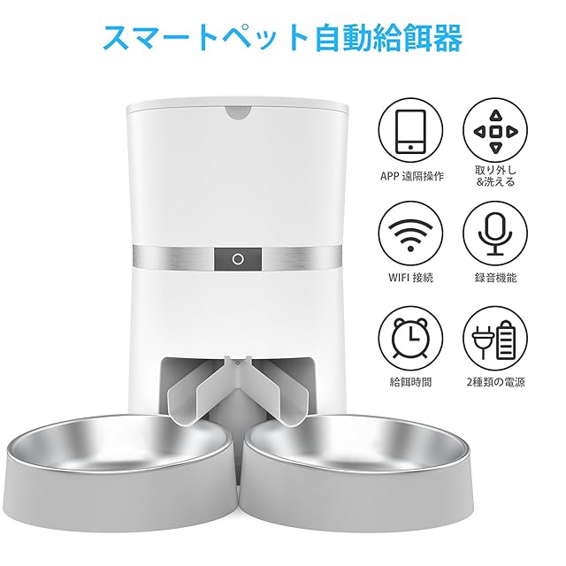 WellToBe多頭飼いに向け キャットフード 自動給餌器 猫 犬用 wifi スマート自動えさやり器 設定も簡単でした スマホ遠隔操作 タイマー式 定時定量 手動給餌可 10秒録音1日6食 2WAY給電 留守番対策 IOS Android対応 日本語対応アプリ 日本語説明書付4L ホワイト
