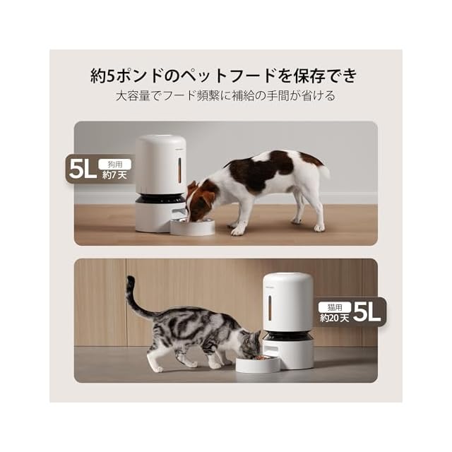 商品名:PETLIBRO 自動給餌器 猫 スマホ遠隔操作 2WAY給電 5G WiFi対応 1日10食 自動餌やり機 中小型犬用 給餌器 猫4重鮮度長持ち 5L大容量 手入れ簡単 簡単操作 ステンレス製ボウル