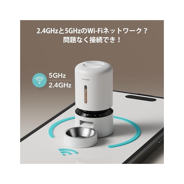 【スマートAPP遠隔操作】PETLIBRO ペット用自動給餌器は5GHzと2.4GHzのWi-Fiに対応しており、iOSまたはAndroidスマートフォンのPETLIBROアプリを通して、いつでもどこでもペットの食事をプログラムすることができます。通常のタイマー式餌やり器と比べると、アプリで給餌スケジュールの設定はより簡単で便利になりました(このモデルはカメラがついていないことをご注意ください)。