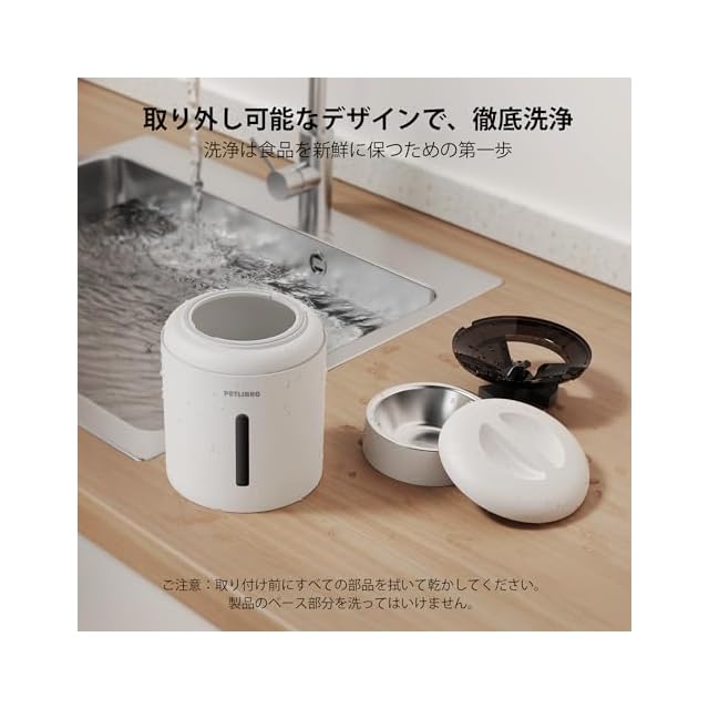 【シンプルな構造】毎日フードを入れるボウルは、食べ残しや猫の唾液などにより雑菌が繁殖しやすくなる。特にプラスチック製のボウルは、頻繫に洗っても、汚れが落ちにくいという欠点がある。細菌を繁殖するボウルを使うと猫ニキビの原因の一つになります。この点をもとに、洗いやすく、細菌が繁殖しにくい304ステンレス製ボウルを採用して、猫の健康を守ります。また、フタ、フードタンク、ローターなどのフードに直接触れる部分も徹底的に洗浄できる。より安全で衛生的なフードをペットに与える。ご注意:給餌器のベース部分を洗ってはいけません。