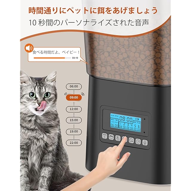 【10秒録音機能】最大10秒まで音声を録音できます。自動餌遣り器 猫は各食事の前に 3 回再生され、ペットに食事を思い出させます。