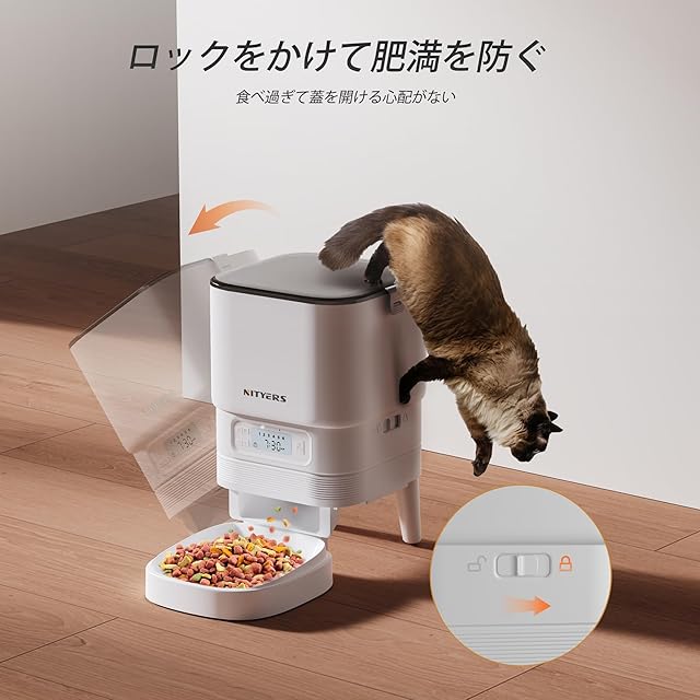 Nityers 自動給餌器 猫 中小型犬用 4.2L自動えさやり器 猫 タイマー式 1日6食 定時定量 2WAY給電 手動給餌可 水洗い可能 餌詰まり防止機能 操作簡単 お手入れ簡単 日本語説明書付き ホワイト