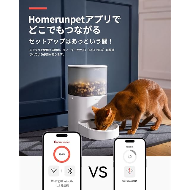 Homerunpet 自動給餌器 猫 中小型犬用 スマホ アプリ 食事 スマートペットフィーダー フード ドライ 30日鮮度長持ち Smart Pet Feeder 操作簡単 お手入れ簡単 Wi-fi Bluetooth スケジュール 4L