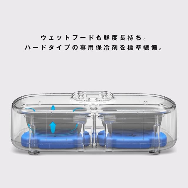 【カンタン操作のカウントダウンタイマー式】設定した時間が経過すると、カバーが開いてごはんが出てきます。最大2食分セットが可能 【保冷剤で鮮度をキープ】各トレイの下に保冷剤の収納スペースを完備!付属の保冷剤をセットしてフードの鮮度を保ちます 【ウェットフードも使えるトレイタイプ】最大2食分のフードを設置可能。トレイタイプなのでウェットフードも使えます 【スマホのアプリで簡単設定】Bluetoothでスマホと接続。タイマー設定や給餌履歴をアプリから確認できます 【単三電池で4本で120日間動作】電源は単三電池4本(別売)でおよそ120日間の使用が可能 【簡単メンテナンス】給餌トレイは取外し式なので、お掃除もらくらく・簡単に ドライフード ウェットフード 対応 フードトレイ容量:355ml(約120g)× 2