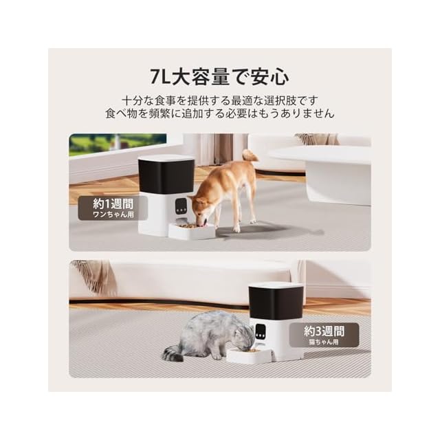 自動給餌器 猫 犬 自動餌やり機 タイマー機能 自動ロック機能付き ペット給餌機 音声録音 スマホ遠隔操作 アプリ操作 ペット自動給餌器 定時定量 7L 手動給餌可 2WAY給電 お手入れ簡単
