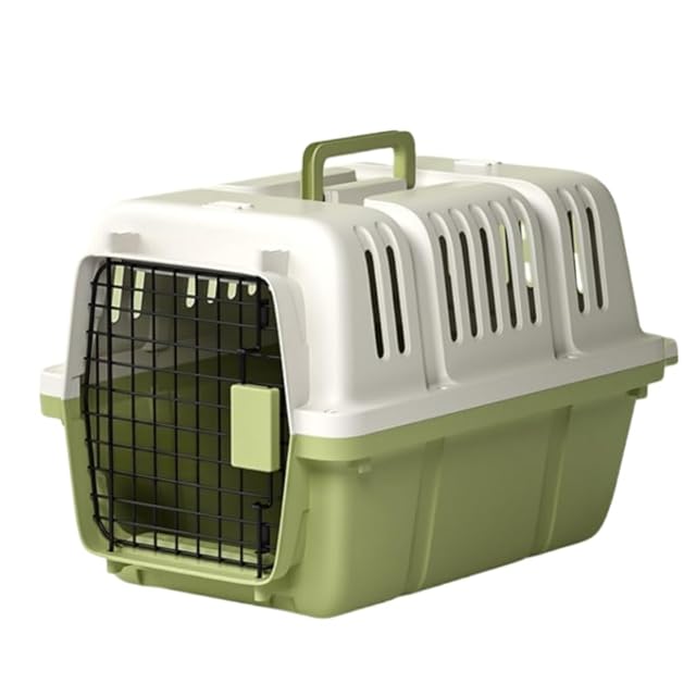 N&S ペットキャリー 猫 キャリー 犬 ゲージ ハードキャリー 取手付き 室内用ハウス IATA基準 小型犬~中型犬 航空輸送対応ペットキャリーケース 通気性 組立簡単 ケージアウトボックス キャンピングキャリー M グリーン