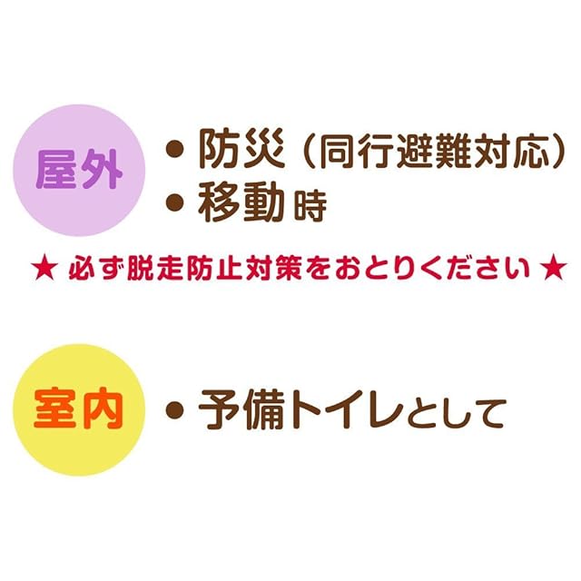 【ポータブルケージとの併用がおすすめ】猫壱のポータブルシリーズ「ポータブルケージ」(別売り)と合わせてのご使用がおすすめです。ポータブルケージの中にポータブルトイレはすっぽりおさまります。災害時の避難場所や、ドライブの車中、旅先など、猫の安心できるスペースにトイレも置いてあげましょう。