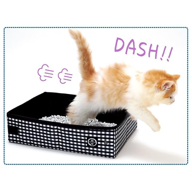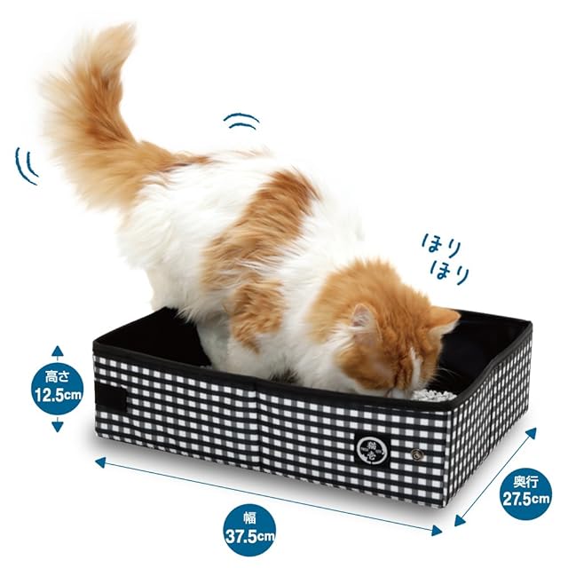 【内側に厚い防水布を使用・お手入れ簡単】ポータブルトイレ内部の黒い布部分は防水仕様になっています。直接猫砂を入れての使用もOK。汚れが中に染み込んでいかないので、サッと拭き取るだけでお掃除できます。水洗いも可能です。(洗濯機のご使用はお避けください)