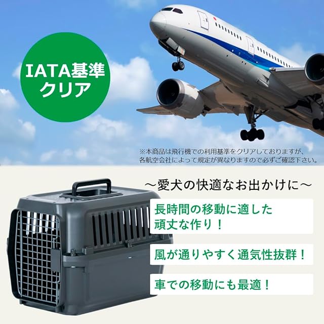 IATA基準クリアなので航空輸送ボックスとして飛行機にも対応 ※ご利用の航空会社ごとに規定がありますので事前にご確認ください※ ネジ式なのでしっかり固定、側面の切込みで常に空気の入れ替えが可能です。 ハードキャリーなのでペットの安全な移動におすすめです。