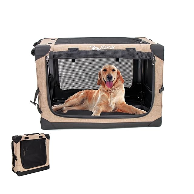 GPR ペット用ソフトクレート ペットキャリー ペットハウス 猫犬兼用 折りたたみ式 洗濯可能 取り外し可能 (カーキ, XL)