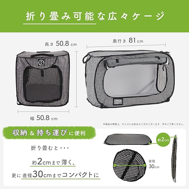 【猫壱の大人気「ポータブルケージ」と「ポータブルトイレ」がセットで登場】ポータブルケージは、組立時高さ:50.8cm 奥行き81cmの大型でありながら、折りたためば直径約30cmの小さな円形に。ポータブルトイレは組立時サイズ 幅37.5 x 奥行 27.5 x 高さ 12.5cmですが、パタンパタンと側面と倒していくだけで、小さく折りたたむことができます。使わない時は小さく畳んで収納できるので、普段使いはもちろんのこと、いざという時の防災グッズとして1家に1個あると役立つグッズです。