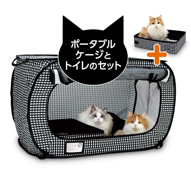 猫壱 ポータブル ケージ トイレ セット 折り畳み可能 防災 移動用 黒