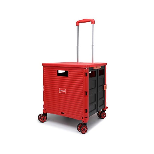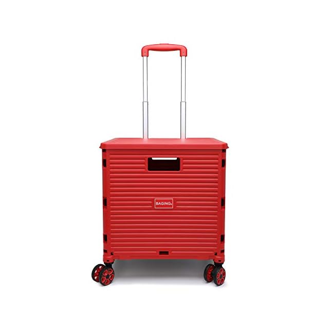 [BAGING バギング]横押し ショッピングカート ストッパー付き 360°回転 4輪静音キャスター 折りたたみ 買い物カート LB007 (赤)