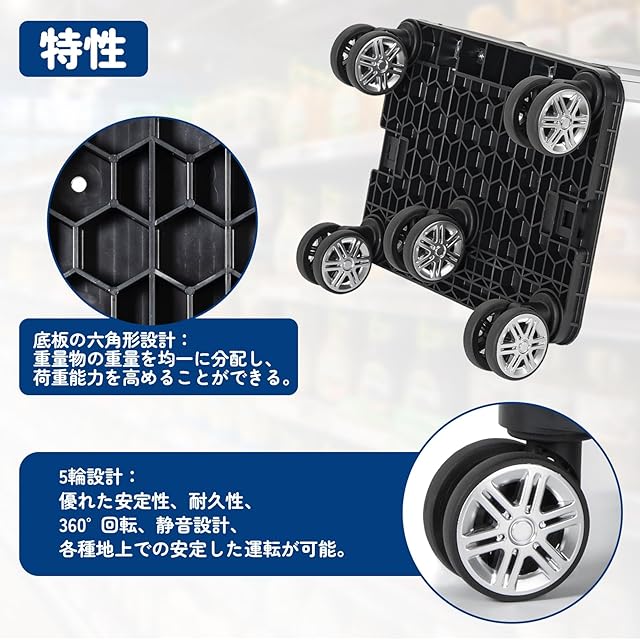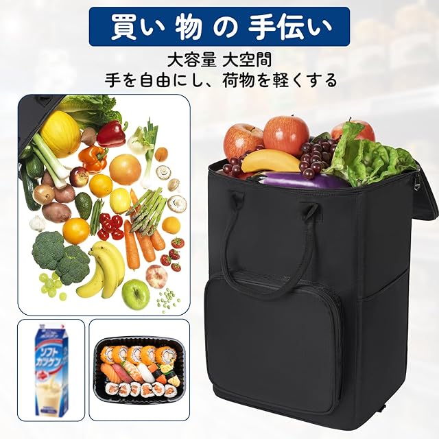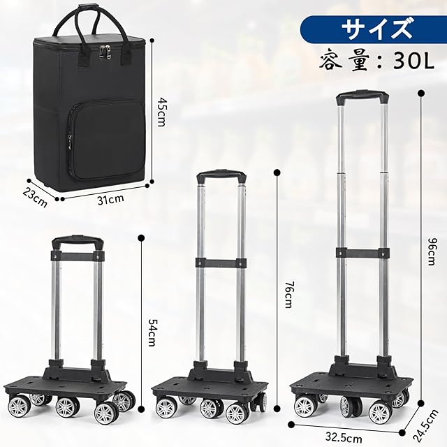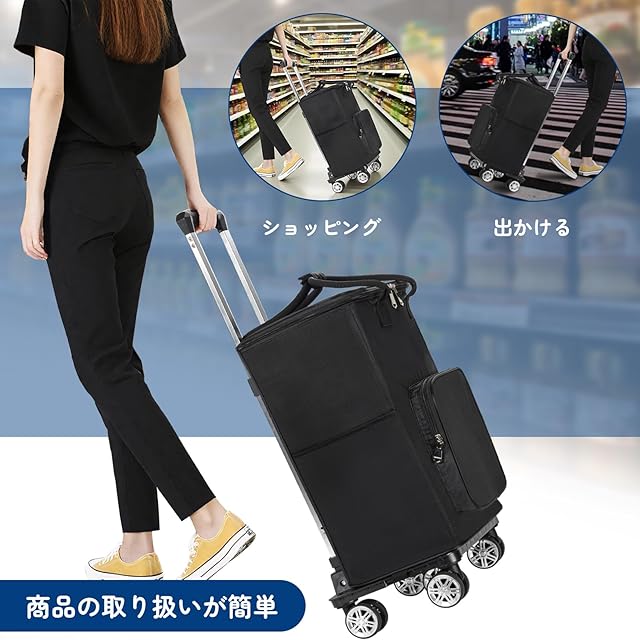 5輪 ショッピングカート ショッピングキャリー 買い物カート 30L 横押し可能 機内持ち込み 軽量 キャリーバッグ 2WAY (Lサイズ ブラック)