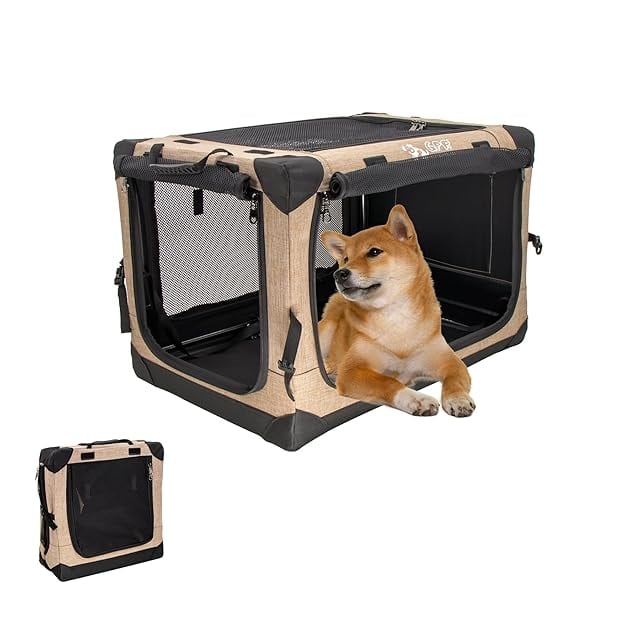 GPR ペット用ソフトクレート ペットキャリー ペットハウス 猫犬兼用 折りたたみ式 洗濯可能 取り外し可能 (カーキ, L)