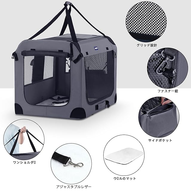 【安全で便利なポケットデザイン】調節可能なリードは子犬の首輪に取り付けることができ、クレートドアのジッパーはロックできるので、クレート内のペットの安全を確保できます。 上部のキャリーハンドルは持ち運びに便利で、サイドポケットにはスナックやおもちゃを収納できます。
