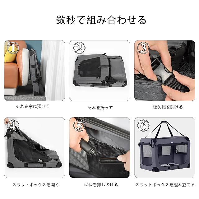 【折りたたみ式て使いやすい】折りたたんで持ち運び可能な布製ペットケージ。 組み立ても工具不要で数秒で完成できます。 コンパクトに折りたたんで収納することができて便利です。屋内に置いては中小型犬猫用ペットハウス、ペット用ドライブシート、室外にペット関連のアウトドアの場合ににご利用いただけます。