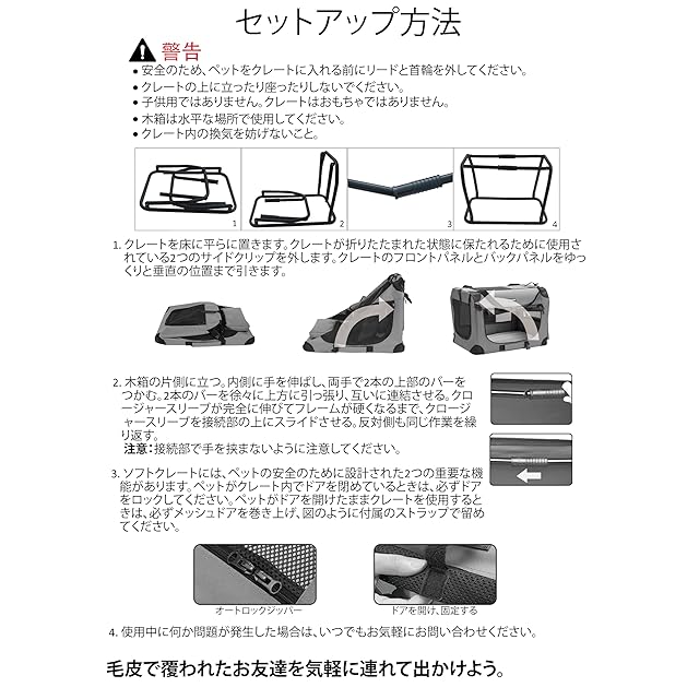 【通気性抜群】ペットケージの四周にメッシュ窓が付いてありますので、空気通りが良くて通気性抜群,ペットケージにいるワンちゃんや猫ちゃんが苦しくことがありません。3つのドア(上部および前面)。窓と前面のドアはメッシュ仕様で4つの側面全てにおいて通気性に優れています。安全なジッパー開閉。締付ストラップは開いているロールアップ式のドアを定位位置で邪魔にならないようにきちんと固定します。