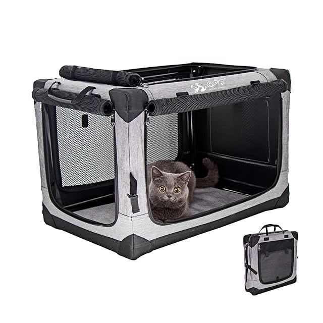 GPR ペット ソフトクレート ケージ ペットキャリー ペットハウス カバー取り外せる 4面メッシュ出入口 鉄フレーム 猫犬兼用 折りたたみ式 洗濯可能 (シルバグレー, M)