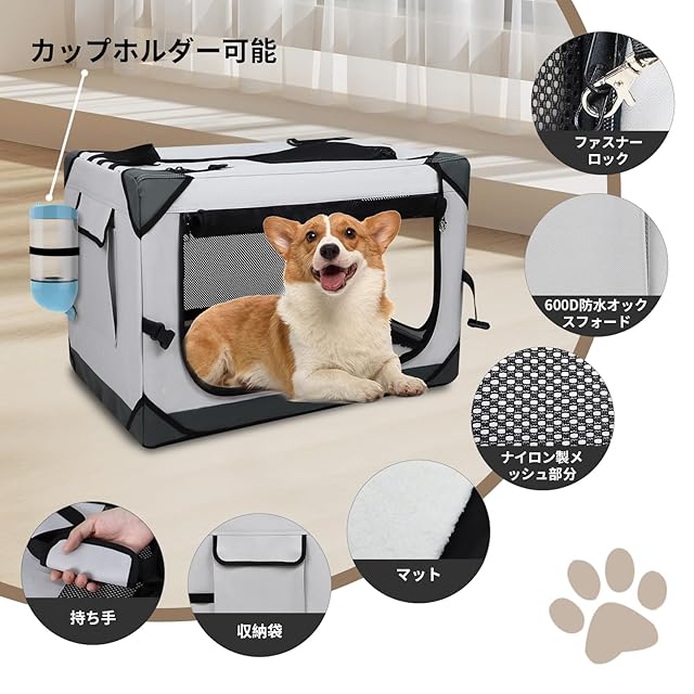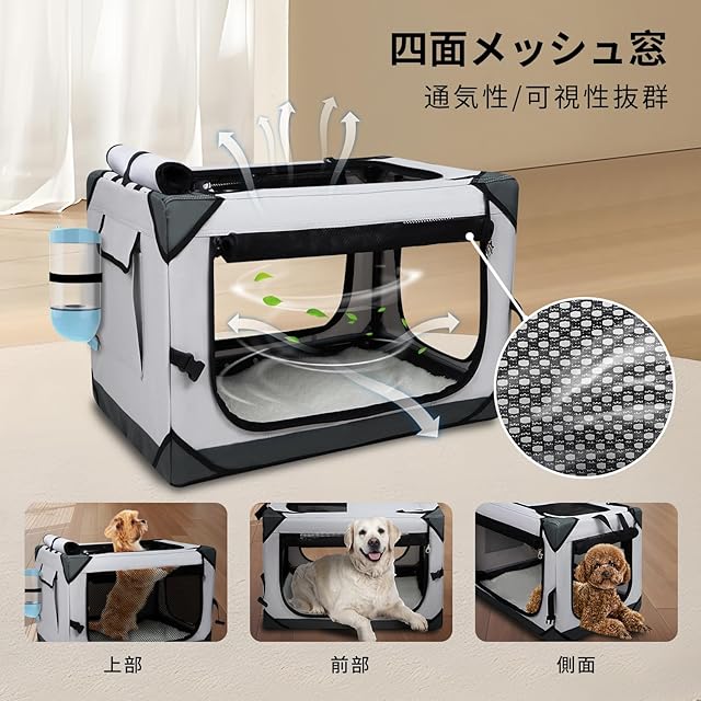 【余裕なお出かけ】犬 キャリーケースは外出使用の間、ワンちゃんがいつでも水を飲めて、中大型ワンちゃん水分補給や夏場の熱中症対策にちょうど良い!お家でハウス、ドライブボックス、スーツケース用、多way使えるソフトケージです。どこへ行っても気軽になり、お出かけや災害用や旅行にとても素敵。折りたたみ後持ちハンドル付き、保管または展開するときはハンドルを使用して運ぶことができます。ハードタイプのケージより軽いので持ち運びのしやすさ、折りたたむとコンパクトに収納でき、ちょっとしたスペースにぴったり「市販のコンテナより30%以上省スペースです」。組み立ても工具不要で数秒で完成できます。(ps:給水ボールは別途ご購入いただく必要があります)