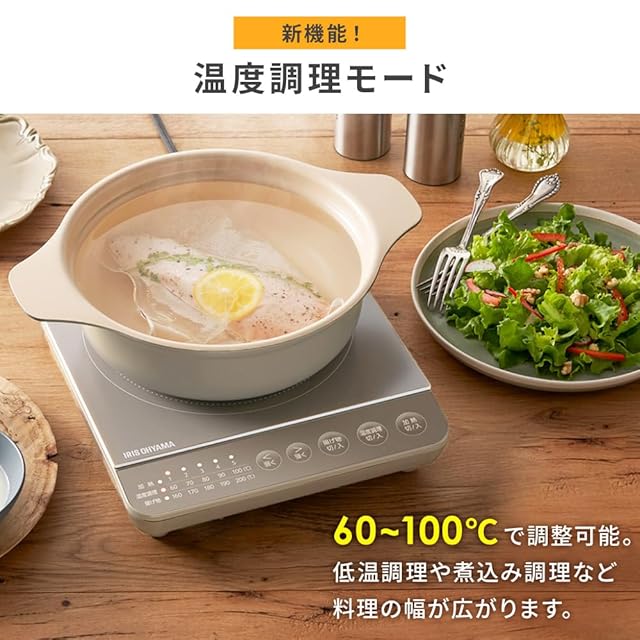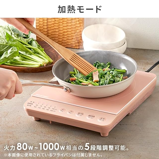 火力調節/加熱:5段階(火力)80W相当、200W相当、500W、700W、1000W/温度調理(約):5段階(水温)60℃、70℃、80℃、90℃、100℃/揚げ物調理(約):5段階(油温)160℃、170℃、180℃、190℃、200℃