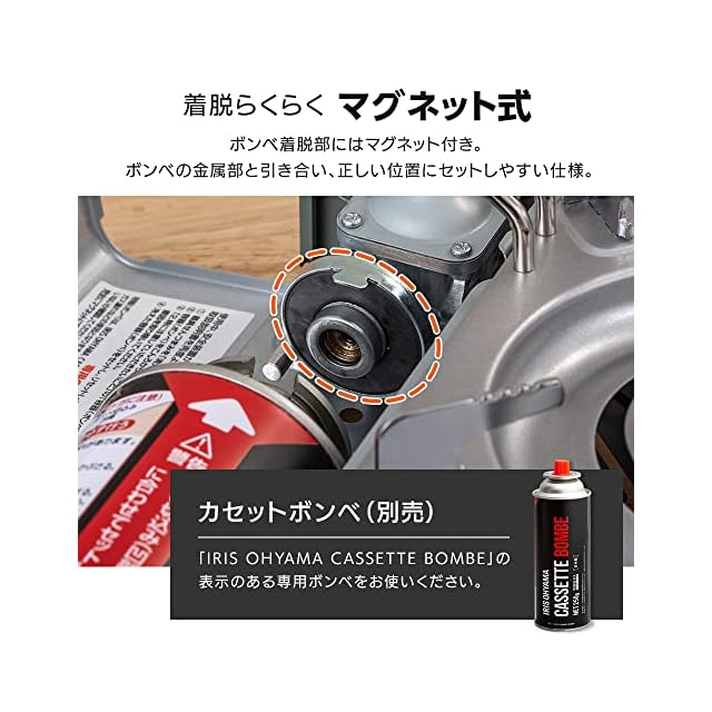 【安全に使える機能】ボンベの過熱を防ぐため、対応サイズ以上の鍋の仕様を防止するガード付き。また、圧力感知安全装置付きなので、万が一過熱した場合も内部の圧力が異常上昇すると自動的にボンベが外れて火が消えます。