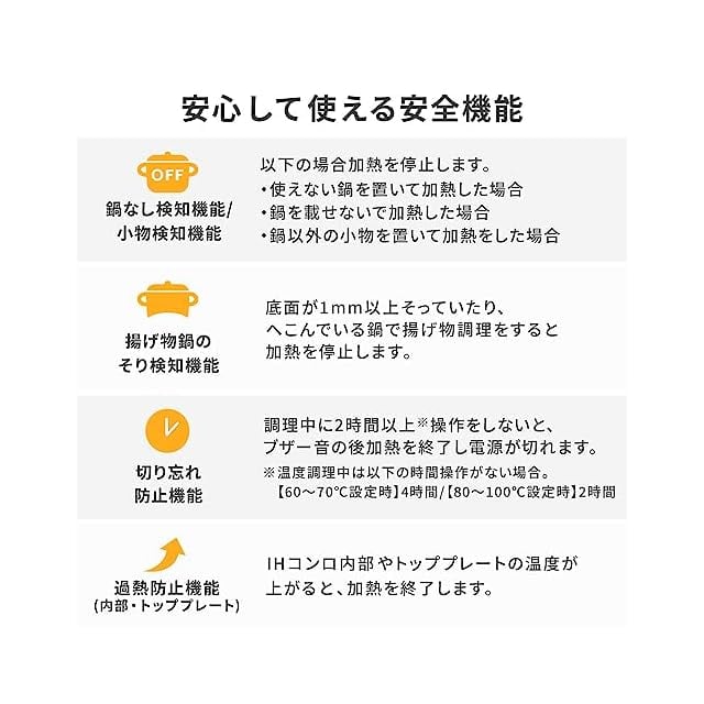 ※IHコンロでは使えるなべと使えないなべがあります。使うなべは、一般財団法人「製品安全協会」のSGマークのあるもの、またはアイリスオーヤマ製「IH対応」なべをおすすめします。