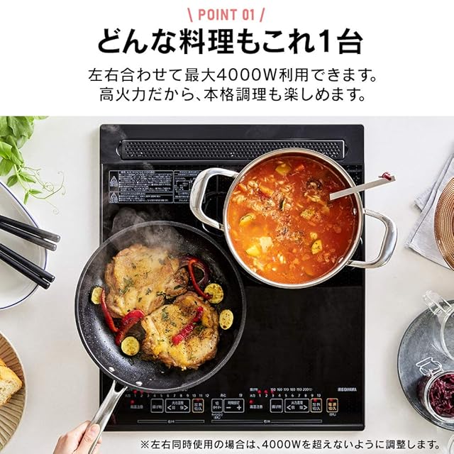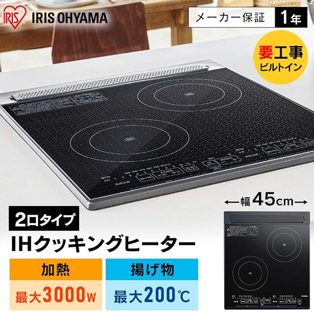 商品名:アイリスオーヤマ(IRIS OHYAMA) IHクッキングヒーター ビルトイン 2口 200V チャイルドロック 切り忘れ防止 最大 12段階調節 小物検知 PIHD4522B ブラック