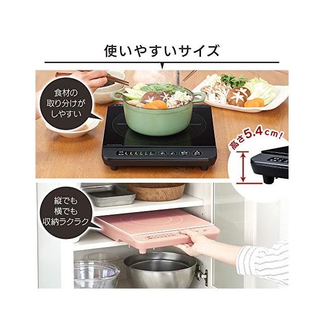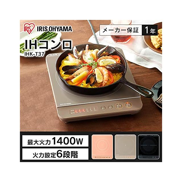 アイリスオーヤマ IHコンロ 1口 IHクッキングヒーター 1400W 卓上 デザイン IHK-T37-T ブラウン