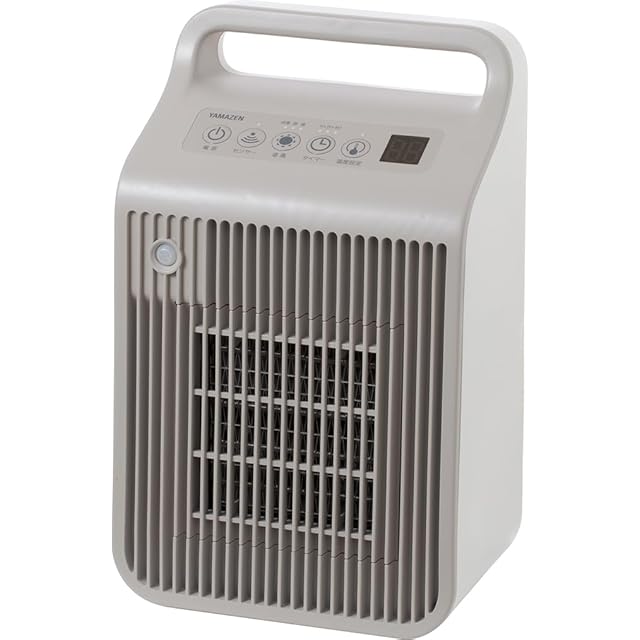 [山善] セラミックファンヒーター 脱衣所 セラミックヒーター 省エネ 人感センサー 温度センサー 速暖 送風モード 切タイマー 洗面所 トイレ 転倒OFFスイッチ グレージュホワイト DSF-VE12(GW)