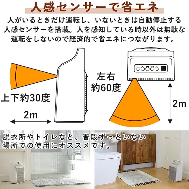 【省エネタイプ】人の動きを感知して自動で電源ON/OFFする人感センサーとセンサーで設定した温度を保ちながら運転する温度センサー搭載で、無駄な運転をせず、省エネに繋がります。