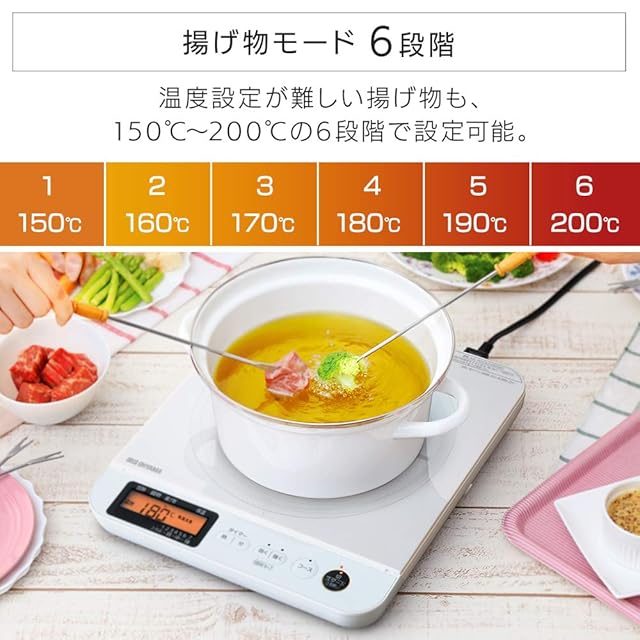 火力調節/加熱モード:7段階(火力):80W相当~1400W/揚げ物モード6段階(油温):約150度~約200度/タイマー:1分~9時間59分