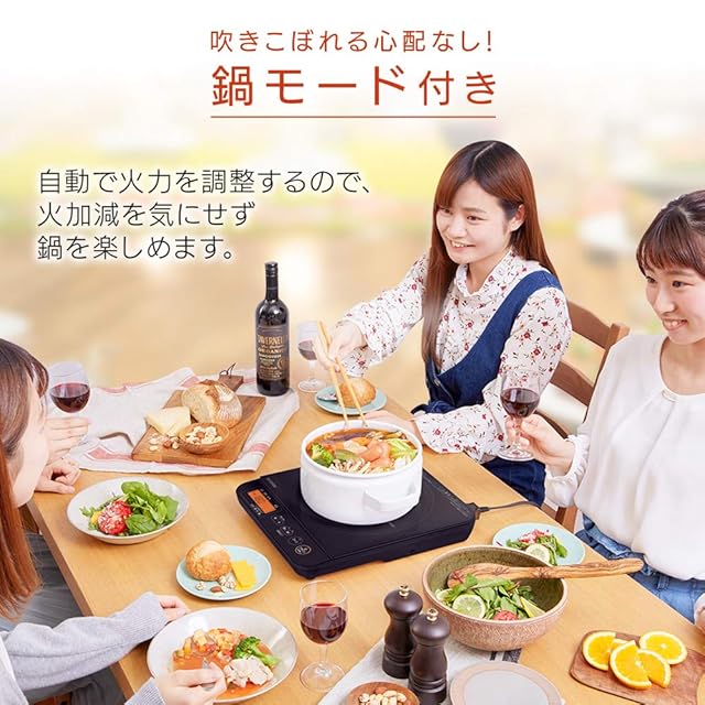 どんな料理もこれ1台!最大火力1400Wのハイパワーです。 4種類のモード(加熱モード、鍋モード、揚げ物モード、保温モード)により、料理の幅が広がります。