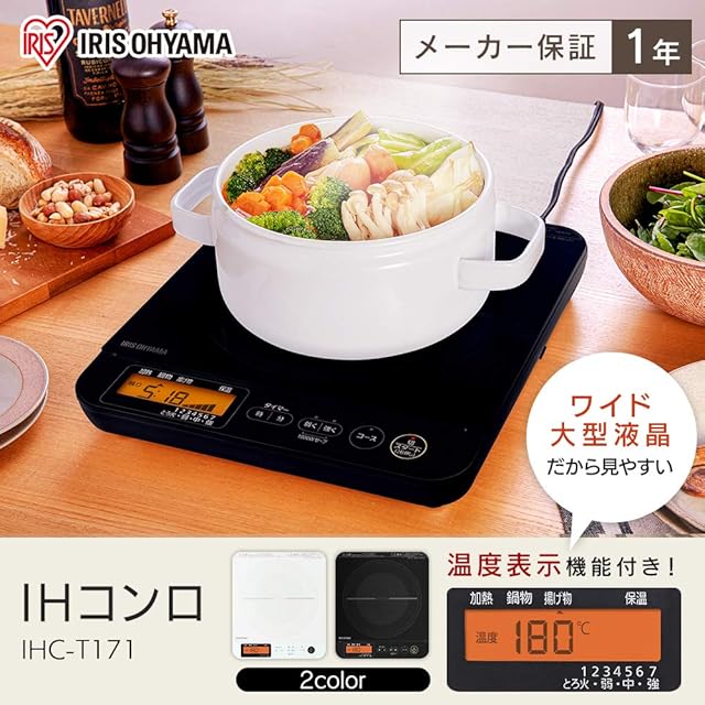 アイリスオーヤマ IHクッキングヒーター 1口 液晶付き 1400W 吹きこぼれ防止 自動温度調整 IHコンロ 卓上 7段階火力調整 ブラック IHCT71B