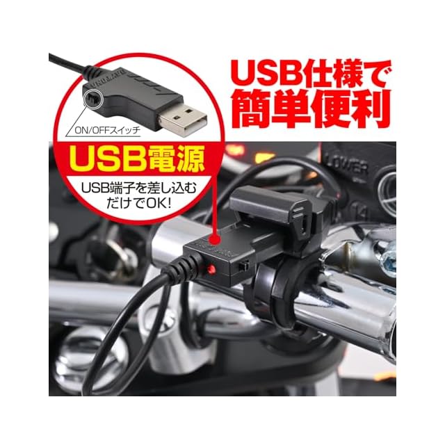 グリップ交換不要、USB接続で配線加工も不要。取り付け簡単な巻き付け式ホットグリップ