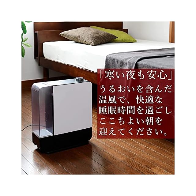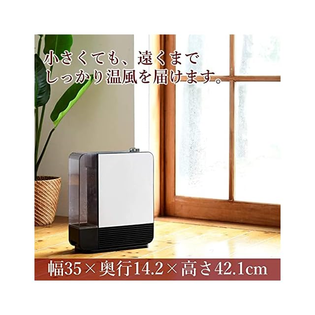 【加湿機能付き】水を吸い上げたフィルターに温風を当てて、すばやく蒸発させ効率よくお部屋を加湿する加熱気化式加湿機能を搭載した大風量タイプのセラミックヒーター。うるおいを含んだ温風なので、大風量でもお部屋を乾燥させずに暖めます。※加湿単独運転はできません。