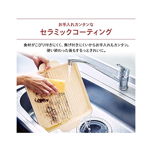 【お手入れカンタンなセラミックコーティング】 食材がくっつきにくく、焦げ付きにくいからお手入れもカンタン。 使い終わった後もするっときれいに。