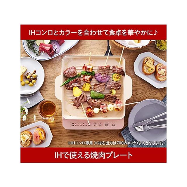 IHコンロとカラーを合わせて食卓を華やかに。 IHで使える焼肉プレートです。 アイリスオーヤマIHコンロ IHK-T37(1400W)に対応。