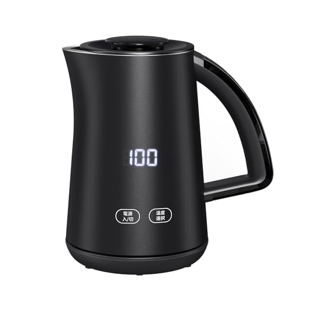 Aliliy 電気ケトル 電気ポット 小型 7段階温度調節 0.8L 一人暮らし 二人暮らし 湯沸かしケトル ディスプレイ 900W 2時間保温 二重構造 触れても熱くない 急速沸騰 空焚き防止機能 熱湯 お茶 ミルク コーヒー マットな質感 木目柄 ブラック PSE認証済み (マットブラック)