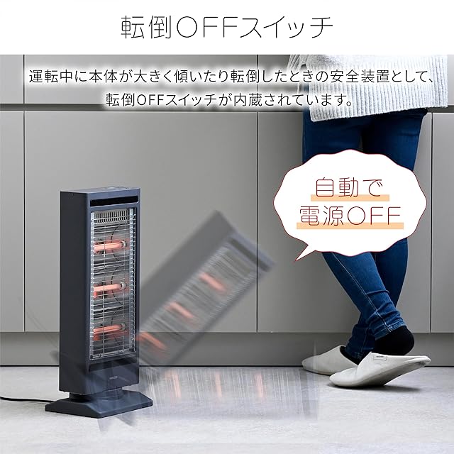 【商品仕様】▪本体サイズ:幅20×奥行17×高さ51cm ▪本体重量:2.2kg ▪電源コードの長さ:1.6m ▪電源:AC100V(50/60Hz) ▪消費電力:600W ▪発熱体:石英管ヒーター3本 ▪安全装置:電流ヒューズ/転倒OFFスイッチ ▪期間:お買い上げ日より1年間(の範囲については ▪書をご確認ください。(一般家庭用以外(業務用など)に使用された場合の故障及び損傷などは対象外となります))
