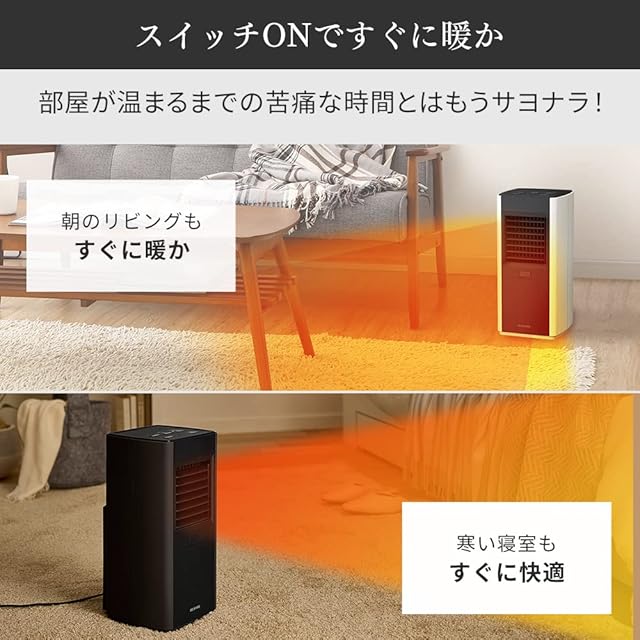 商品名:アイリスオーヤマ ヒーター セラミックファンヒーター 人感センサー付き 節電 省エネ 大風量 首振りタイプ 600/1000W/1200W 3段階温度調整 転倒オフ機能 速暖 小型 コンパクト スリム コンパクト ACH-SM12A-H グレー
