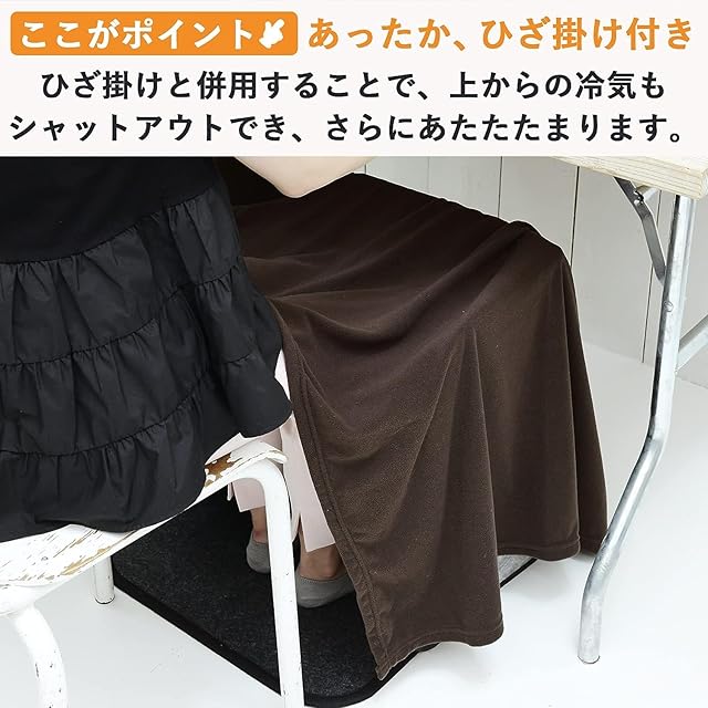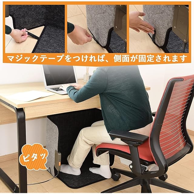 【足元をやさしくあたためる】デスクでの冷えがちな足元を暖めるのに最適なパネルヒーター。広いヒーター面で囲んで、ひざ下全体をしっかり暖めてくれます。また、付属のひざ掛けと併用すればさらにあたたたまります。