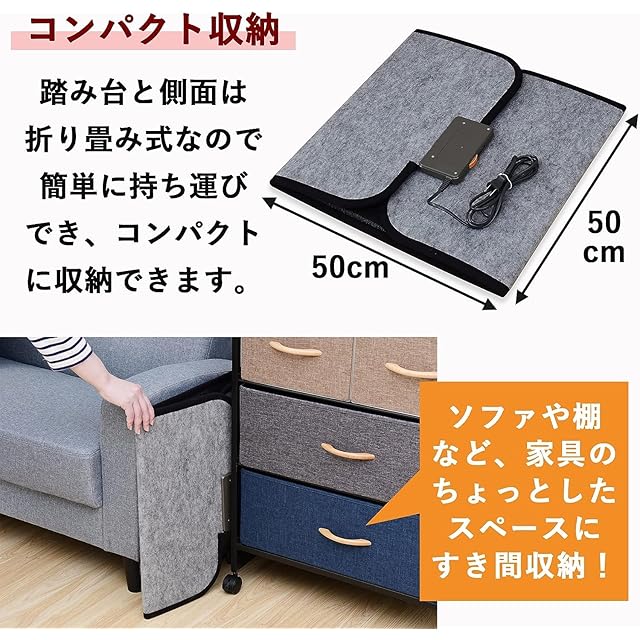 【コンパクト収納】踏み台と側面は折り畳み式なので、持ち運びも簡単ラクラク。収納時は家具のすき間などのちょっとしたスペースに収納できます。