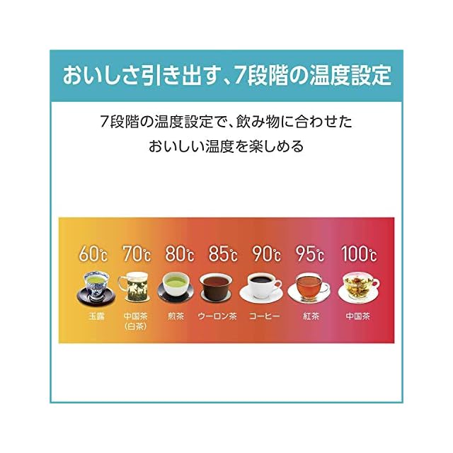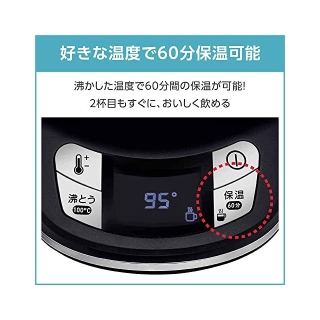 60分間保温可能:お好みの温度で60分間保温可能なので、2杯目も沸かし直さず、すぐ飲めます。