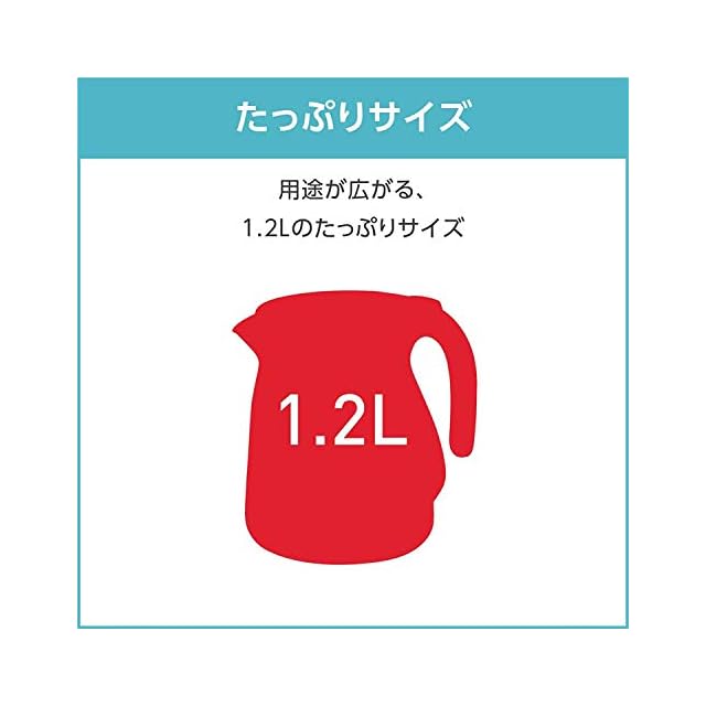 大容量1.2L:たっぷり沸かせて毎日のコーヒーやお茶はもちろん、パスタなどの大量のお湯が必要な料理シーンでも活躍します。