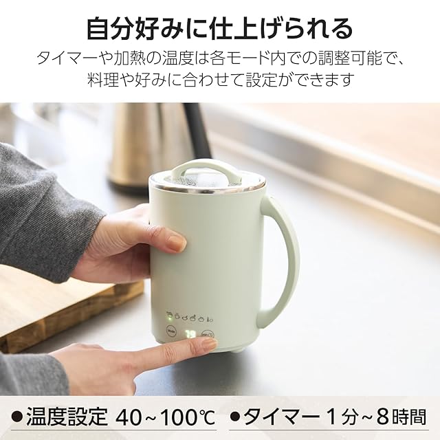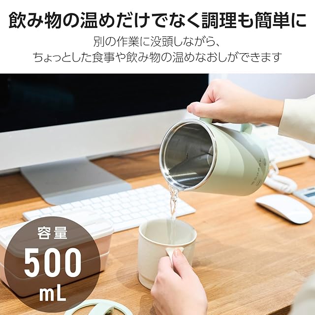 エレコム マグカップ型電気なべ 電気ケトル 500mL クックマグ 【 沸かす 煮込む 保温 スープ レトルト 手動 】6モード Cook Mug plus ケーブル長1.5m ミント HAC-LEP01GR