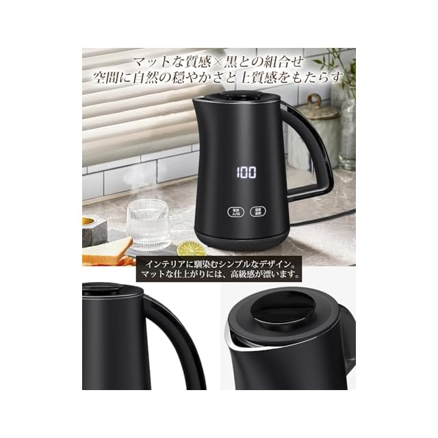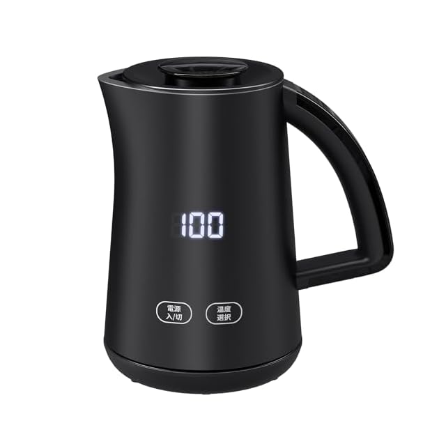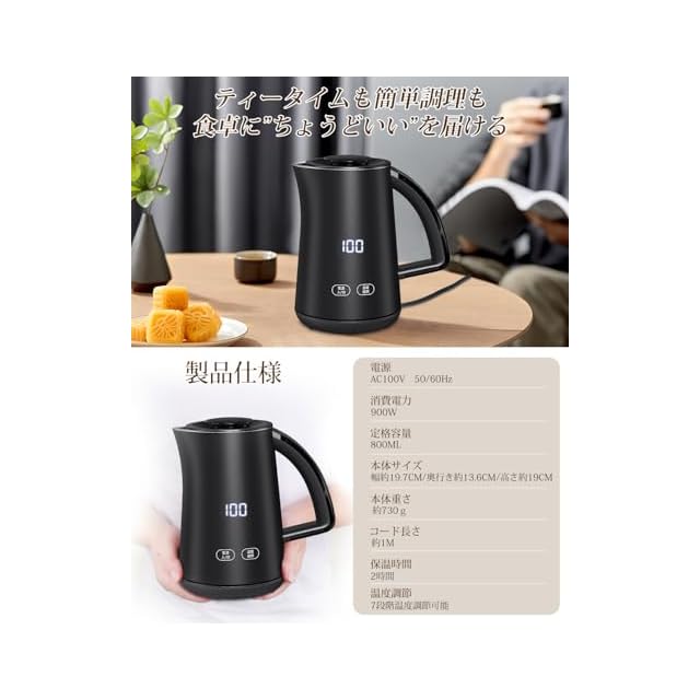 Aliliy 電気ケトル 電気ポット 小型 7段階温度調節 0.8L 一人暮らし 二人暮らし 湯沸かしケトル ディスプレイ 900W 2時間保温 二重構造 触れても熱くない 急速沸騰 空焚き防止機能 熱湯 お茶 ミルク コーヒー マットな質感 木目柄 ブラック PSE認証済み (ブラック)