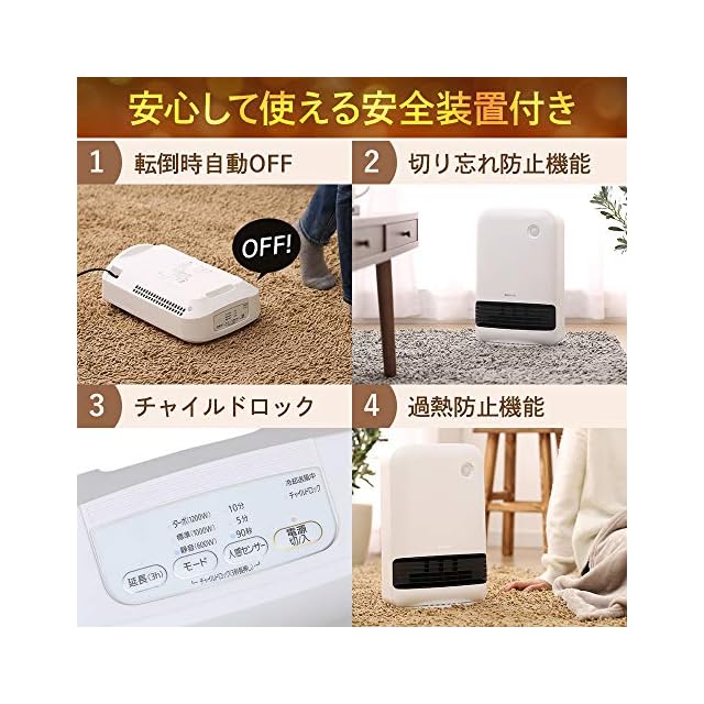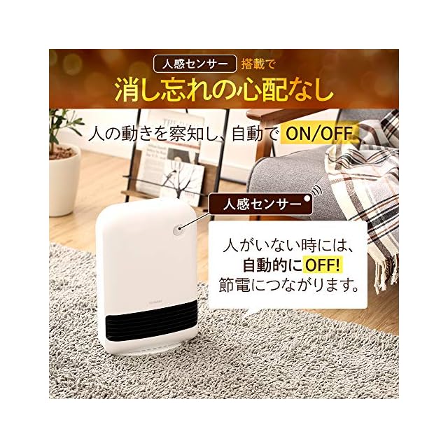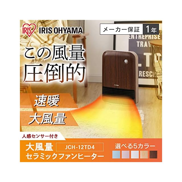 商品名:アイリスオーヤマ(IRIS OHYAMA) ヒーター セラミックファンヒーター 暖房器具 電気 足元 小型 温風 省エネ 脱衣所 人感センサー付き 大風量 木目調 ブラウン JCHM-12TD4-DTM